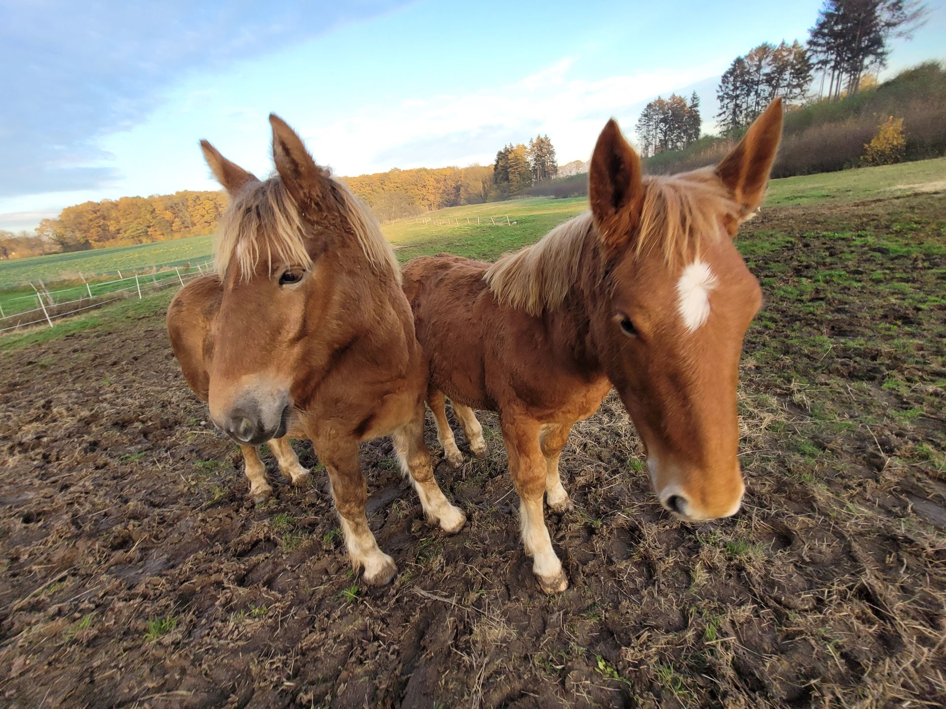 Charakter: beide sind lieb, Lore ist sanft, möchte immer gefallen und eine Stute mit gewisser Zickigkeit; Loriot ist noch jung und verspielt